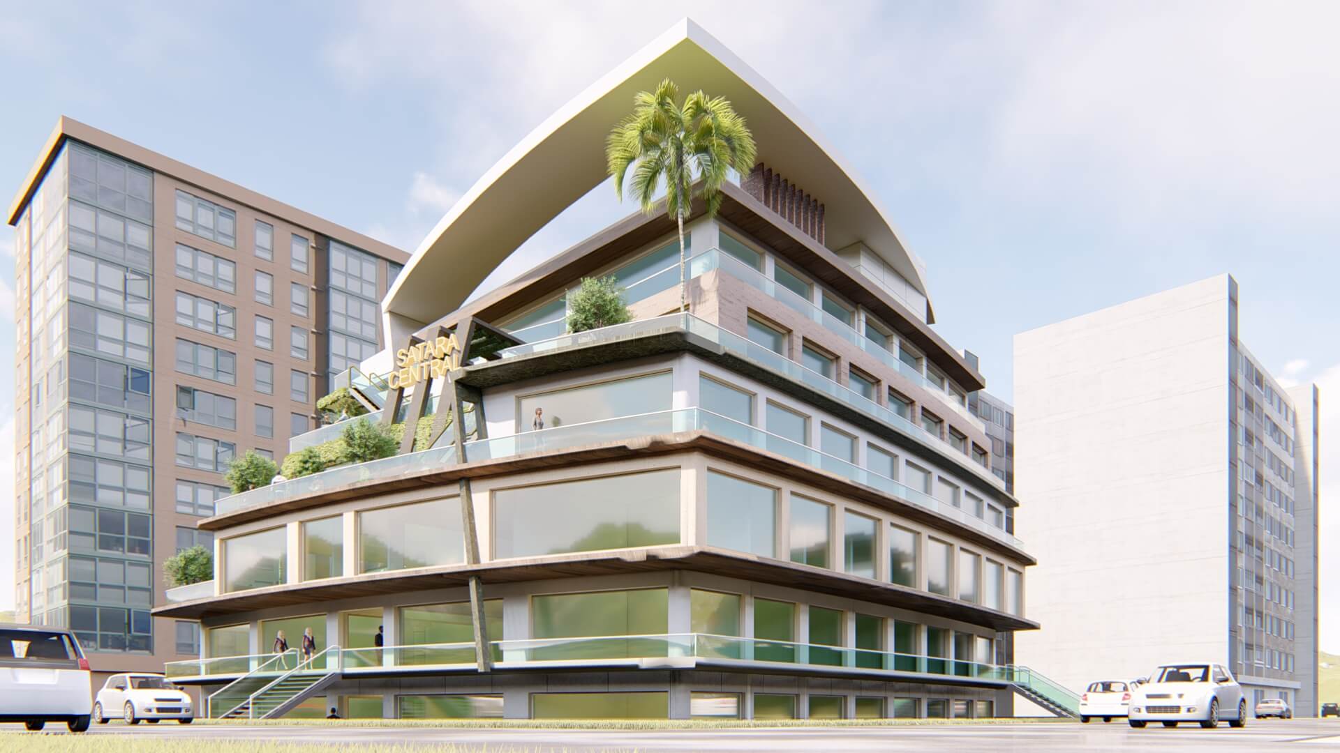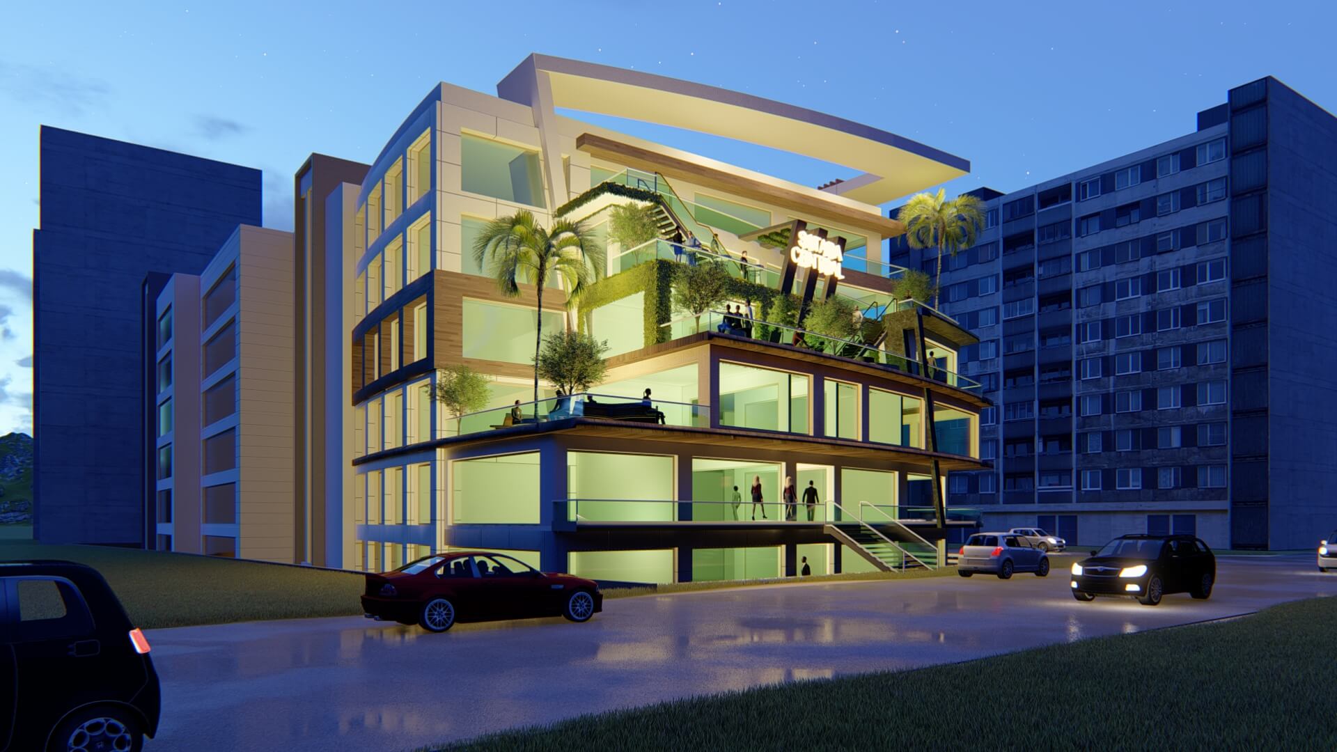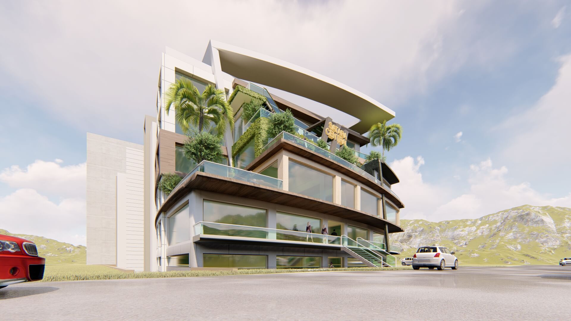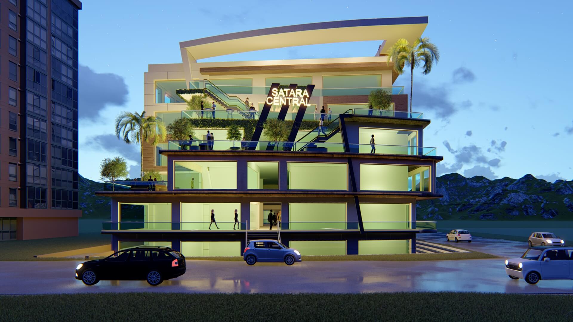 BUILTUP AREA : 65000 SQ.FT COMMERCIAL COMPLEX CUM CONVENTION CENTRE WITH MEETING ROOMS, CAFES, HALLS, SWIMMING POOLS ETC