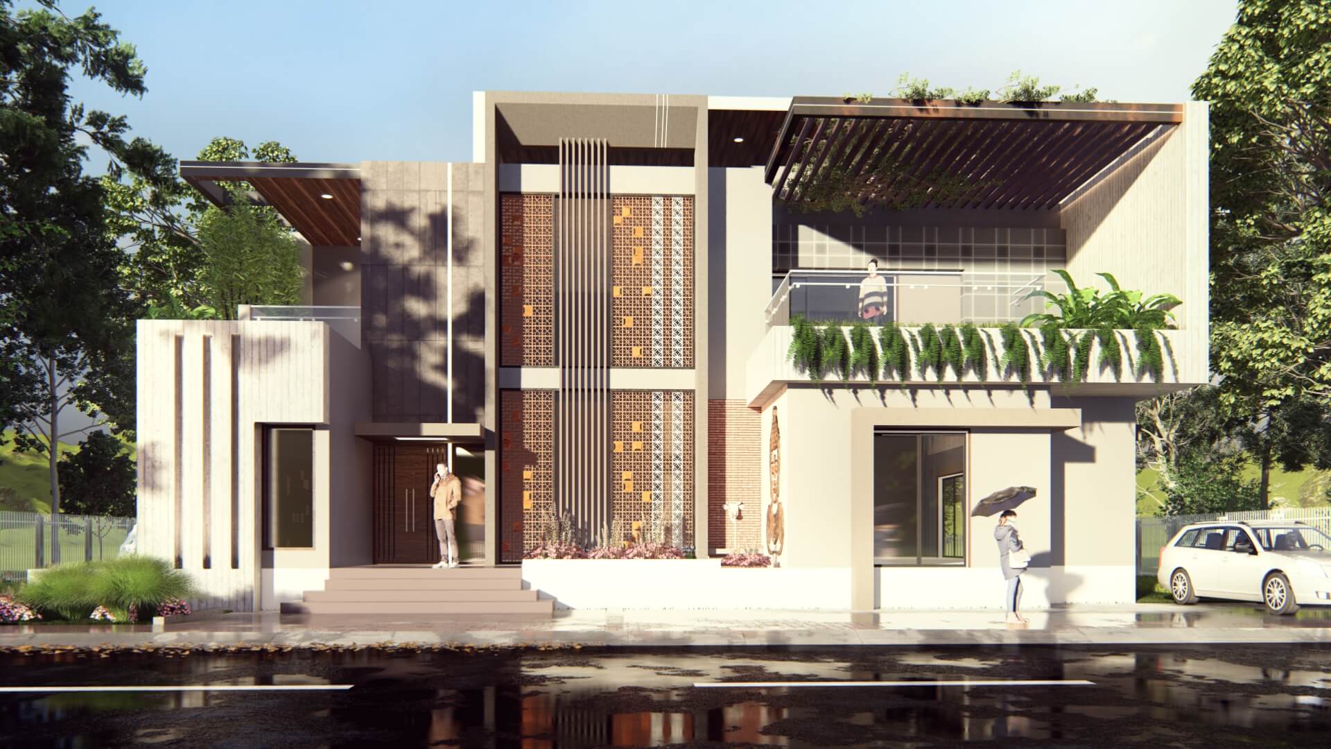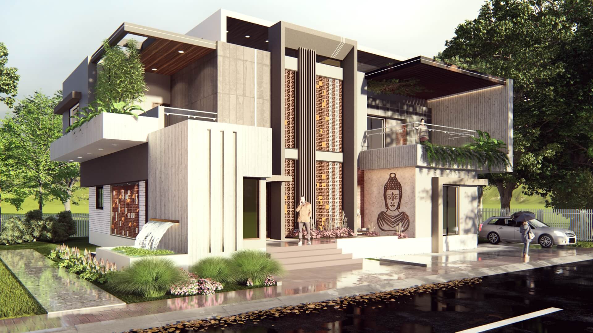 BUILTUP AREA : 4358 SQ.FT 4 BEDDED CONTEMPORARY BUNGALOW WITH LIVING KITCHEN WASHING & PUJA