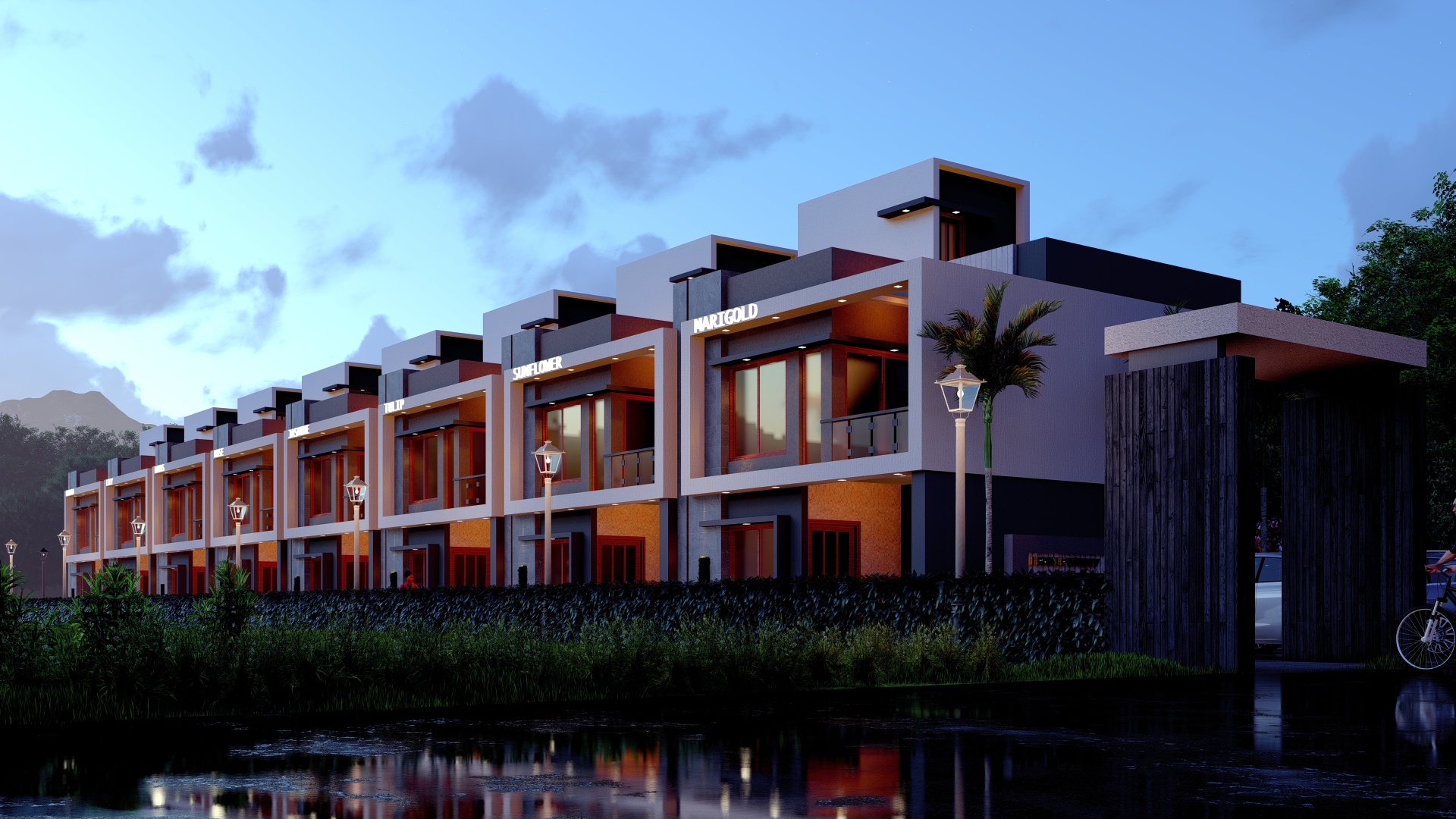 BUILTUP AREA : 5574 SQ.FT ROWHOUSE HAVING 8 UNITS EACH WITH 3 BED LIVING ROOM, KITCHEN AND FAMILY ROOM